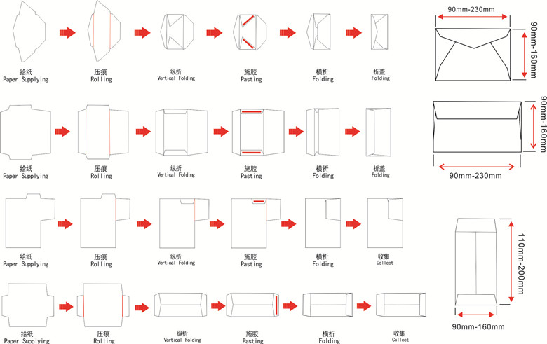 ZF-391信封機中西式兼容,可加工1-9號中式信封和2-7號西式信封以及同范圍內的各種非標紙袋糊合設備(房卡套、餐巾紙包、錢夾式封套)。機器采用整體鑄件平面流水式結構,可不停機連續續紙,操作簡單方便,調節便捷、走紙穩定、生產效率高,是大批量生產大規格信封以及各類紙袋產品加工的理想設備。