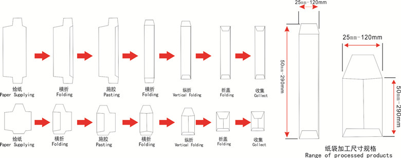 ZD-120筷子袋糊合機適用于筷子袋、檀香袋、刀叉袋及小西藥袋的加工糊合。他采用吸氣式底部抽紙,不停機續紙,分紙可靠。氣吸式滾筒柵欄折疊更穩定準確,輪轉上膠可保證膠量均勻。高效準確、性能穩定、操作方便,是生產高檔筷子袋等紙袋產品的理想設備。