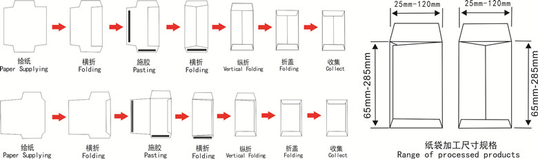 ZD-230 small pocket envelope machine is used to produce NO.1-6# pocket envelope and red pocket envelope. And this machine can also be applied for making small medicine paper bag, button paper bag, seed paper bag and so on.